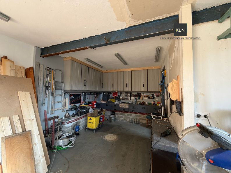 W skład nieruchomości wchodzą także budynki z przeznaczeniem na prowadzenie działalności gospodarczej tj.: garaże, wiata oraz pomieszczenia które można wykorzystać jako miejsce na warsztat, stolarnię czy też hurtownię z powierzchnią magazynową. Obecnie pomieszczenia wykorzystywane są jako stolarnia a znajdujące się w niej narzędzia i maszyny można zakupić za odpowiednią dopłatą. Zarówno budynek mieszkalny, garaże oraz budynek stolarni zyskał nowy dach oraz dodatkową powierzchnię magazynową na poddaszu co czyni tę nieruchomość jeszcze bardziej atrakcyjną. Budynek tzw. stodoła ze względu na dużą powierzchnię otwiera wiele możliwości jej wykorzystania i zagospodarowania.