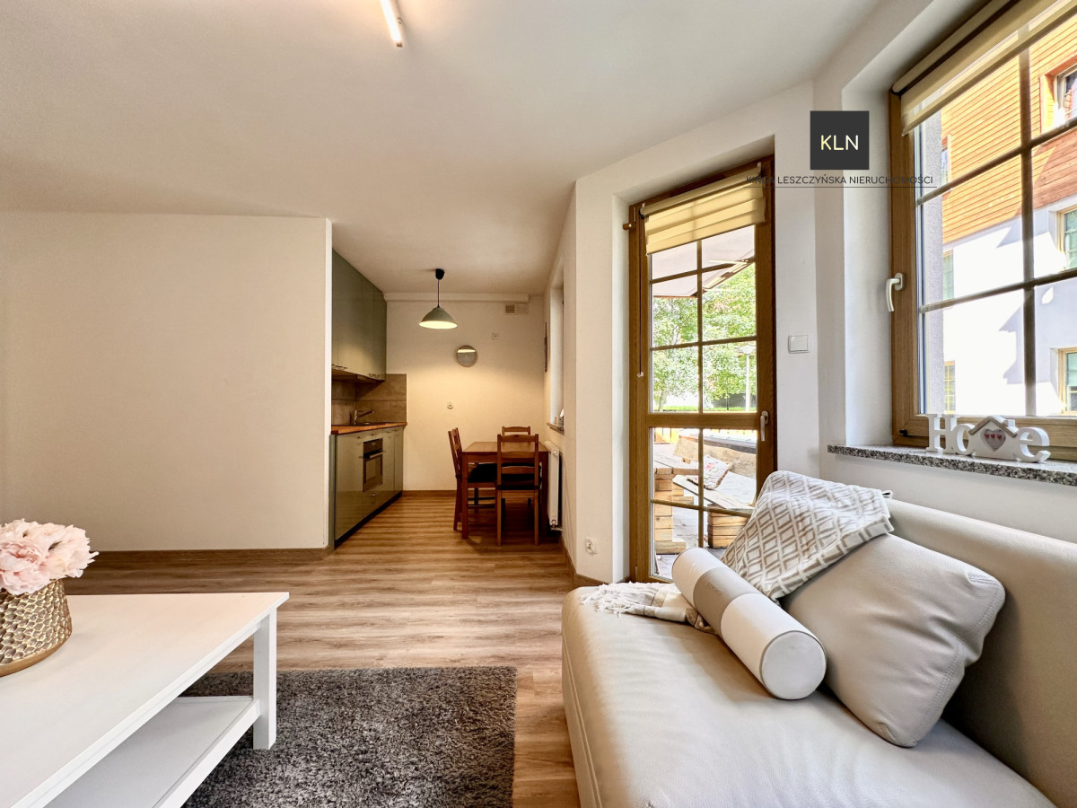 Nieruchomość sprzedawana jest wraz z całym wyposażeniem widocznym na zdjęciach. Największym atutem jest bardzo duży taras, na którym w sezonie wiosenno-letnim można się zrelaksować i posłuchać śpiewu ptaków.