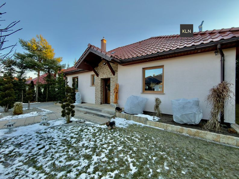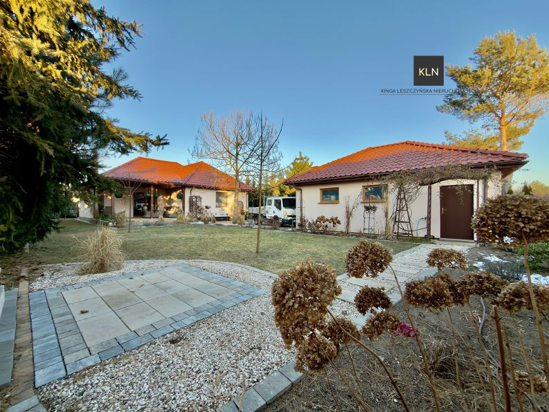 Na sprzedaż komfortowy dom wolnostojący z garażem dwustanowiskowym otoczony efektownym ogrodem na działce o powierzchni 10 arów.