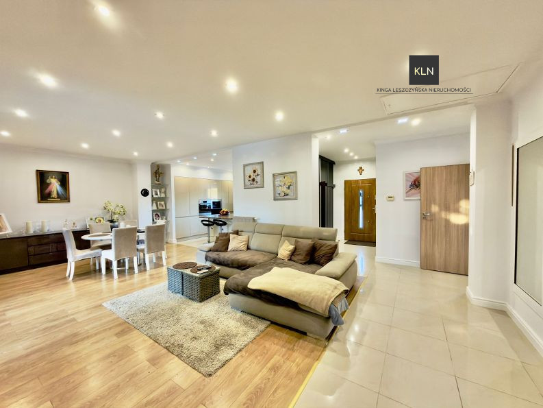 - Salon z otwartą kuchnią oraz jadalnią,