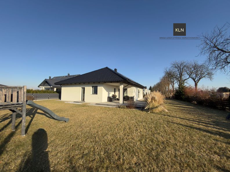Nowoczesna bryła budynku współgra z wystrojem wnętrza. Dom jest umiejscowiony na ogrodzonej działce o powierzchni 1019 m2 w cichej i spokojnej części miejscowości. Teren w koło budynku został całkowicie i atrakcyjnie zagospodarowany.