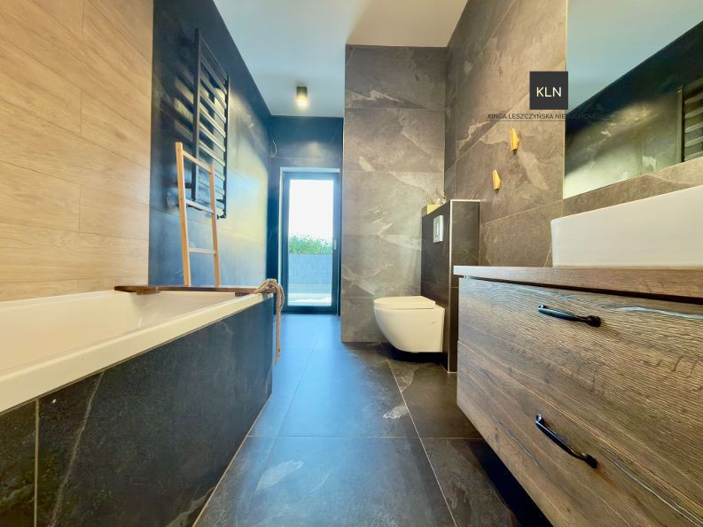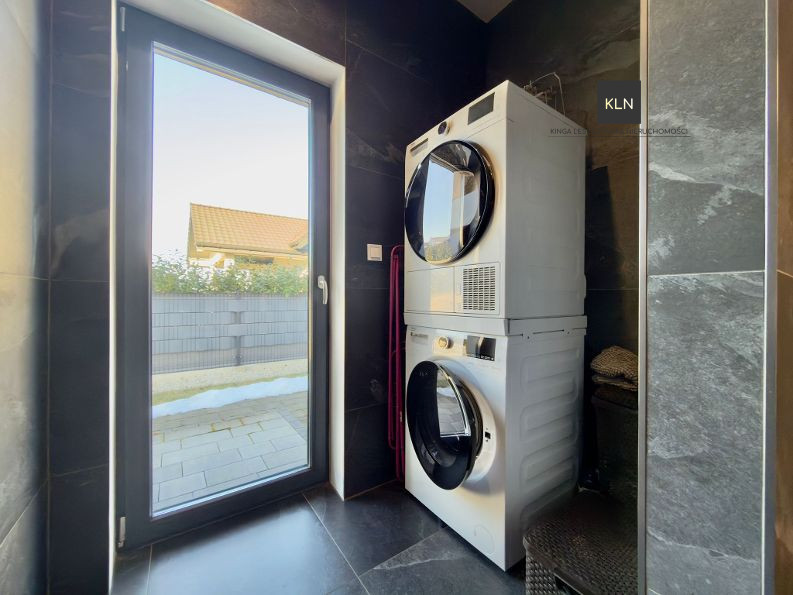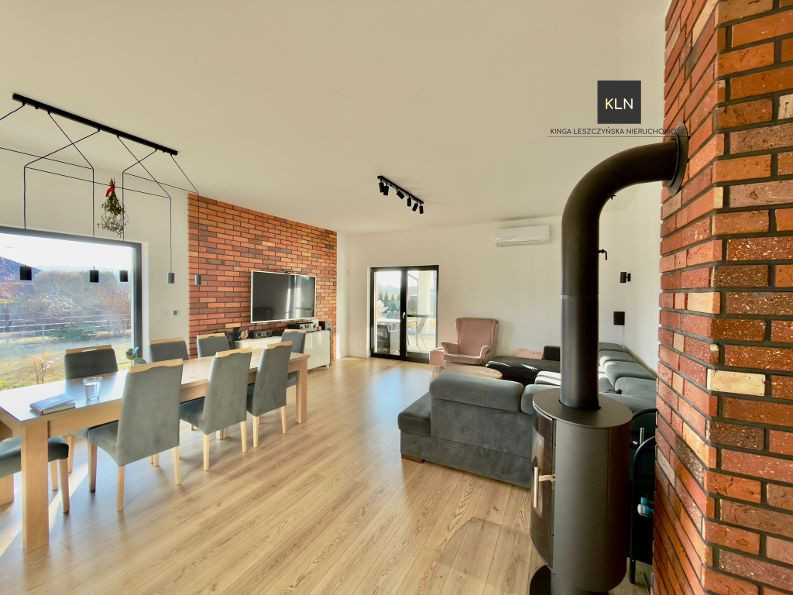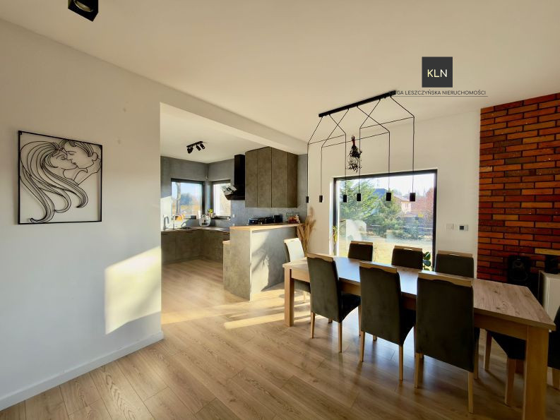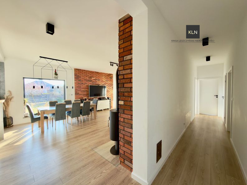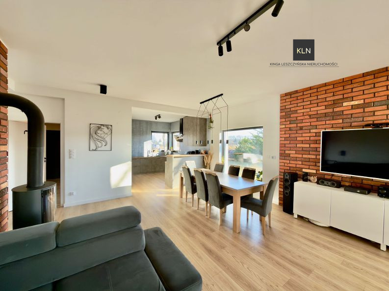 Dom o nowoczesnej bryle znajduje się na dużej działce, która jest pięknie utrzymanym ogrodem z licznymi nasadzeniami. Wnętrze domu zachwyca otwartą przestrzenią, grą naturalnego światła oraz nowoczesnym desing'em. Ta niepowtarzalna nieruchomość została stylowo urządzona z dbałością o najdrobniejsze szczegóły. Większość wyposażenia znajdującego się w domu a w szczególności wyposażenie kuchni wraz ze sprzętami AGD jest przedmiotem oferty. Dodatkowym atutem nieruchomości jest funkcjonalny podział pomieszczeń na strefę dzienną i nocną co zwiększa komfort codziennego użytkowania przestrzeni domu.