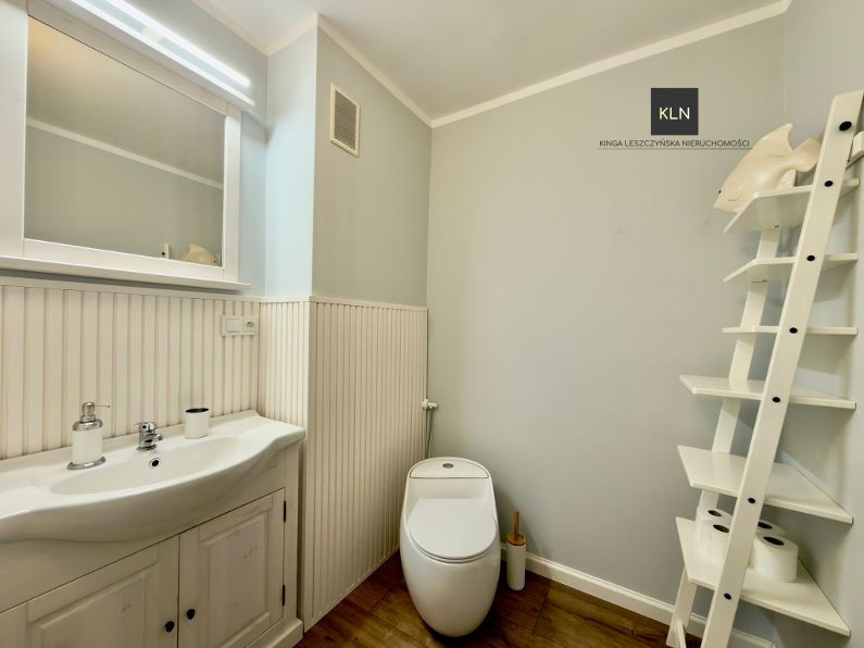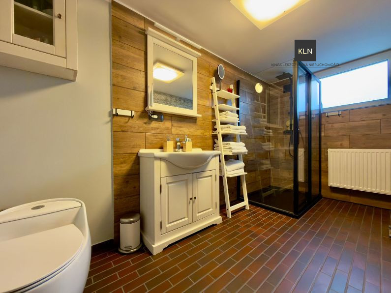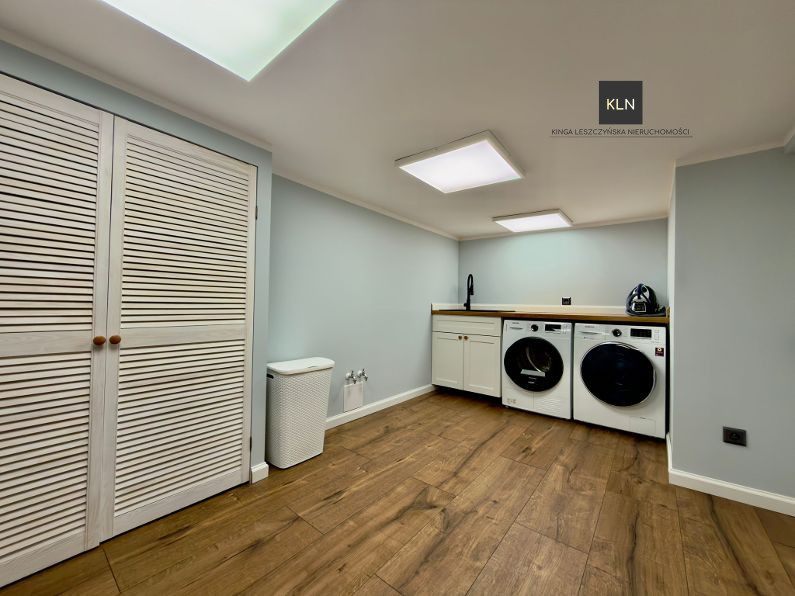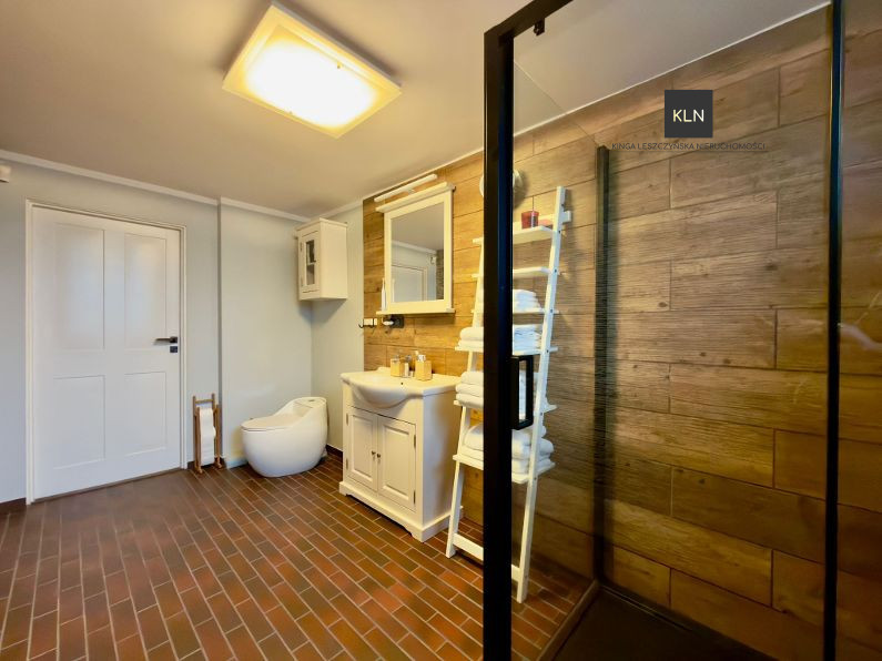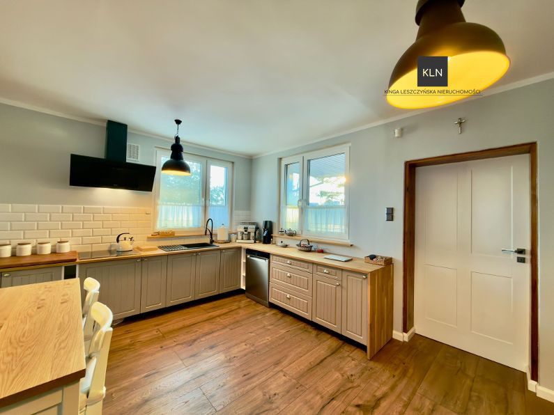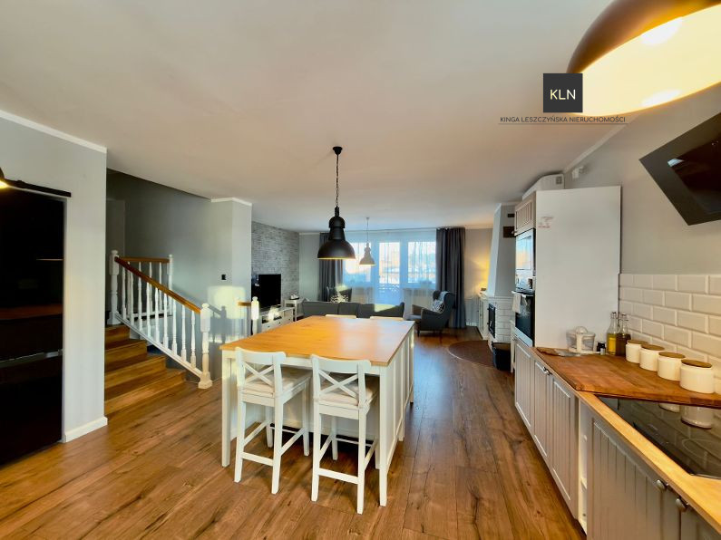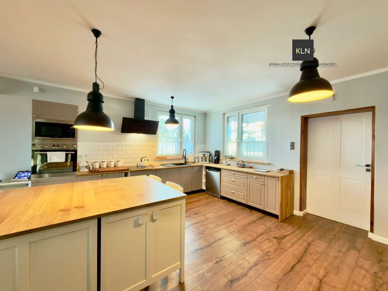Dom został stylowo i komfortowo wyposażony, większość mebli a w szczególności funkcjonalnie wyposażona kuchnia oraz sprzęty AGD, meble z pokoju dziennego oraz jadalni są przedmiotem oferty.