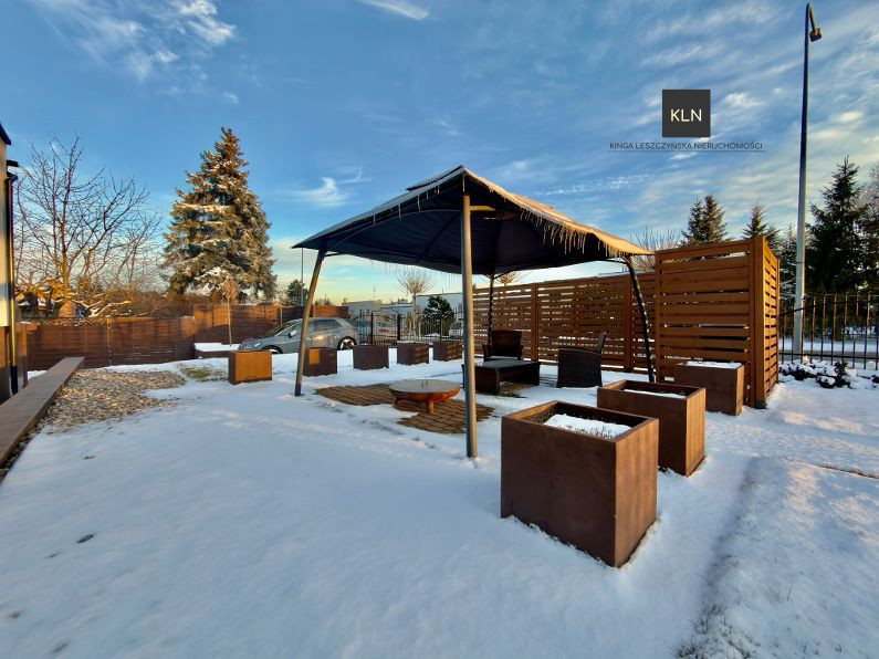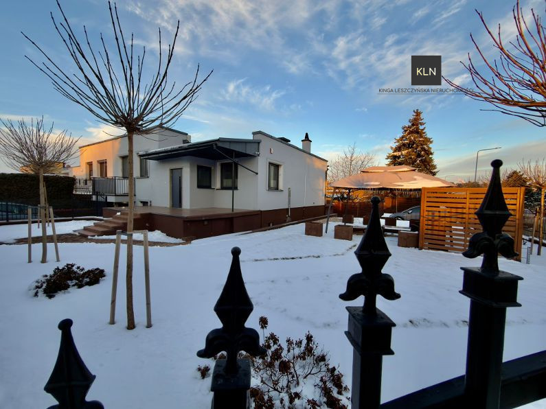 Dom został wybudowany na działce o powierzchni 200 m2, która obecnie jest pięknie utrzymanym ogrodem z efektownymi tarasami. Przed domem: duży podjazd, chodniki oraz sporo terenów zielonych. Całość terenu zamknięta została efektownym ogrodzeniem z elektrycznie sterowaną bramą.