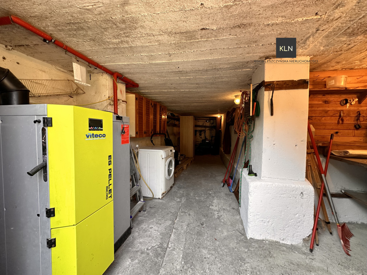 Budynek jest częściowo podpiwniczony, a także częściowo posiada poddasze użytkowe. W piwnicy znajduje się piec na pellet, hydrofor oraz bojler.