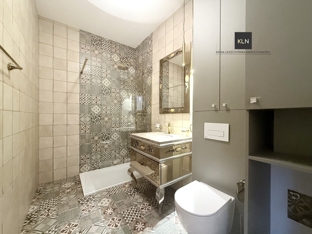 Mieszkanie wykończone jest pod klucz z wysokiej jakości materiałów, tj. zabudowa kuchenna wraz ze sprzętem AGD, płytki hiszpańskie, armatura i oświetlenie sprowadzane z zagranicy, panele wysokiej klasy.
