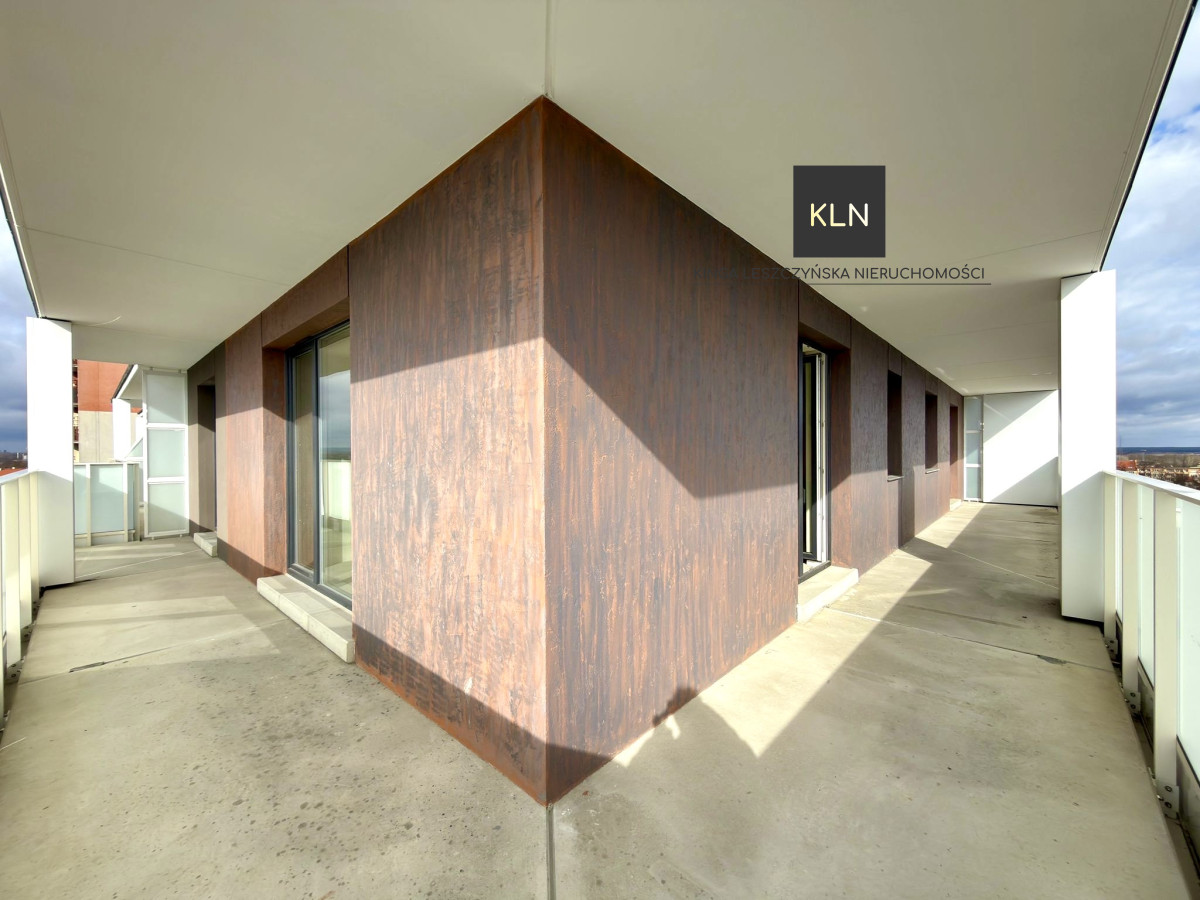 Zarówno z salonu jak i z dwóch sypialni wyjdziemy na duży, okalający mieszkanie taras.