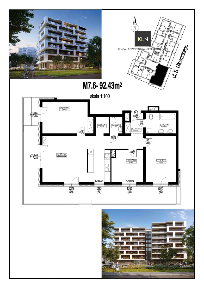 Na sprzedaż mieszkanie w stanie deweloperskim w inwestycji Park Głowackiego przy ulicy Głowackiego 6. Mieszkanie ma powierzchnię 92,86 m2 i znajduje się na ostatnim-siódmym piętrze w budynku z dwiema windami. W skład powierzchni wchodzą: