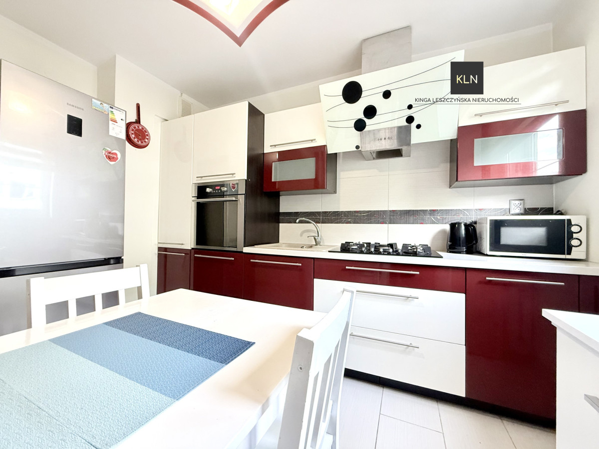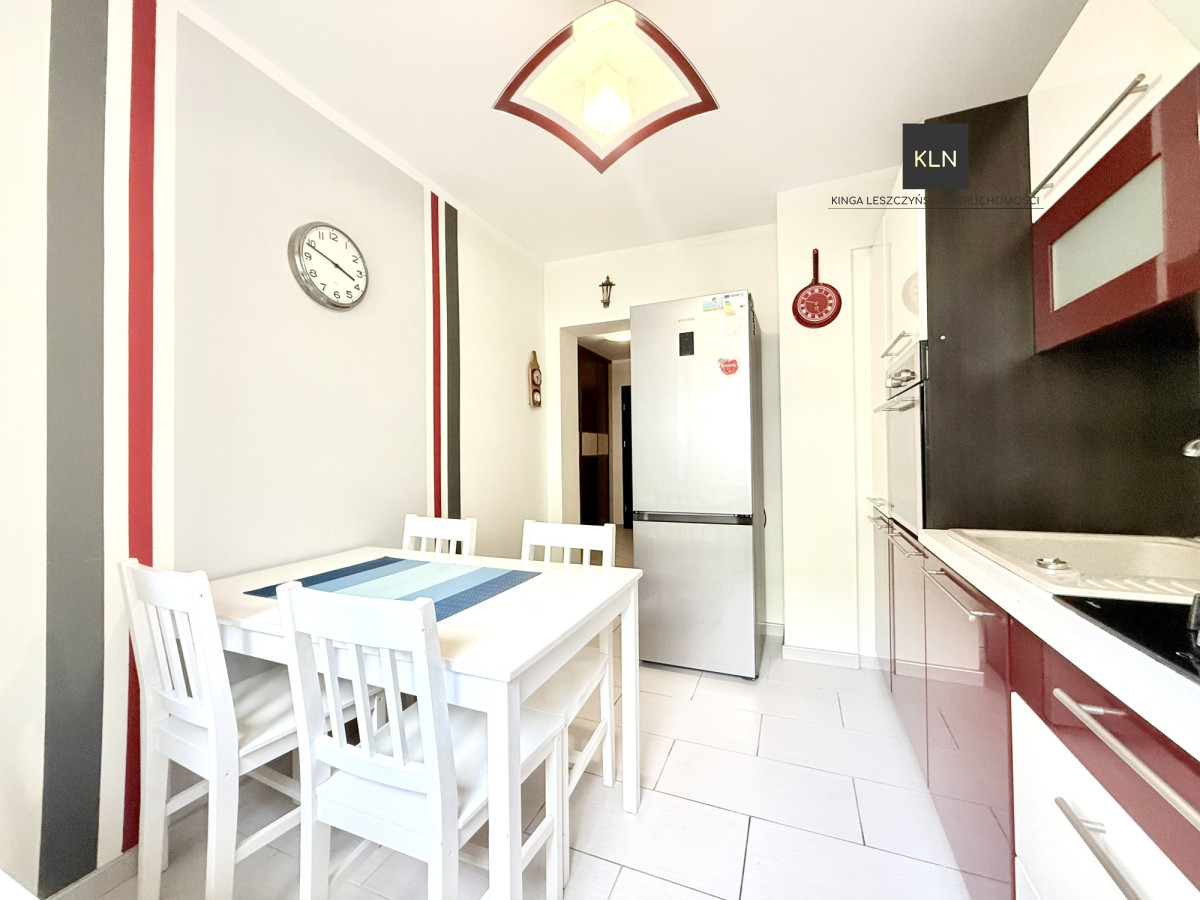 Mieszkanie jest gotowe do wprowadzenia się - zadbane, czyste, nie wymaga żadnych nakładów finansowych. Na podłogach panele i terakota, okna PCV, w dużym pokoju zamontowane są rolety zewnętrzne, drzwi antywłamaniowe. W kuchni i łazience zabudowa, sprzęt AGD w cenie (lodówka, piekarnik, zmywarka, płyta gazowa).