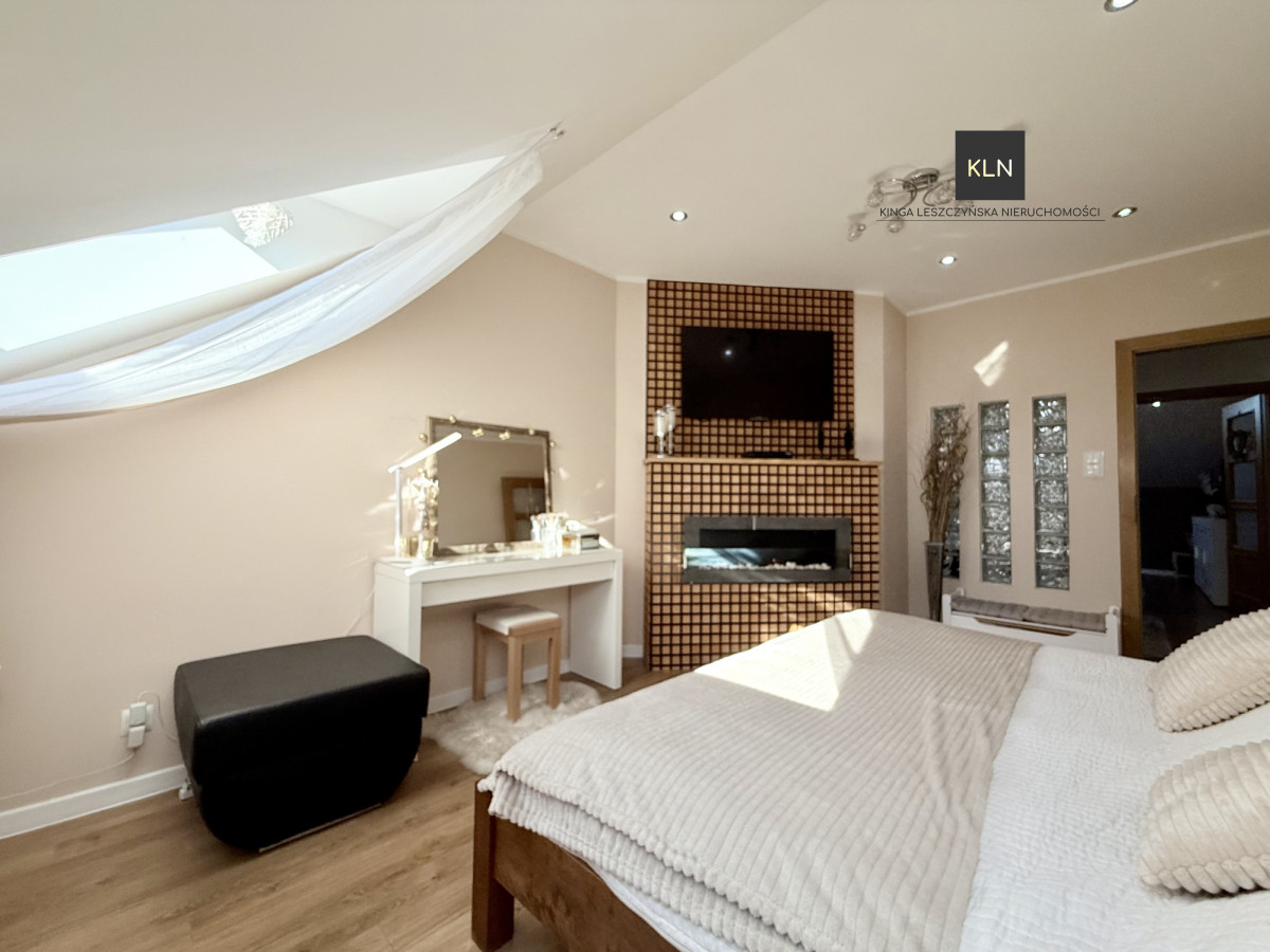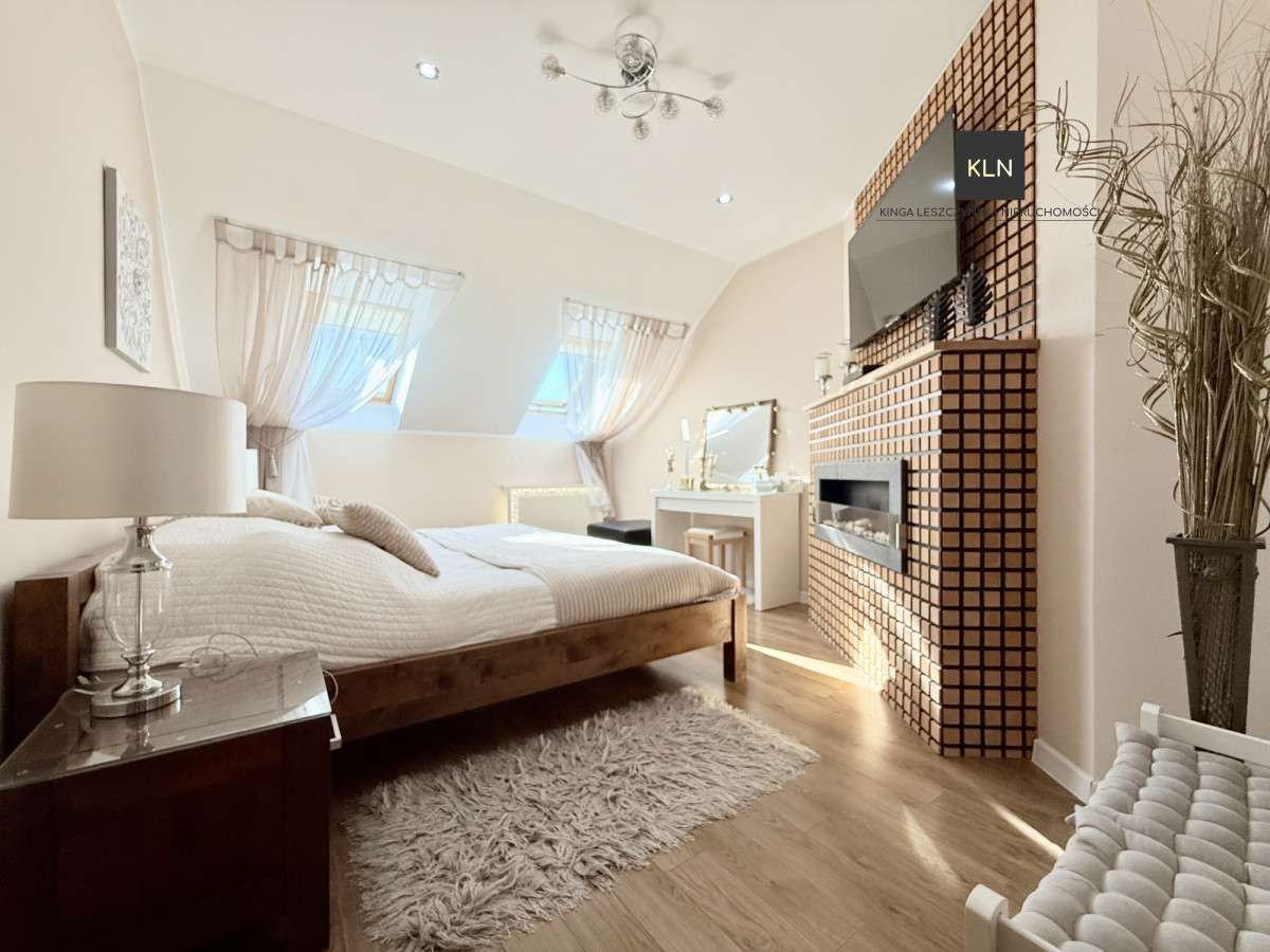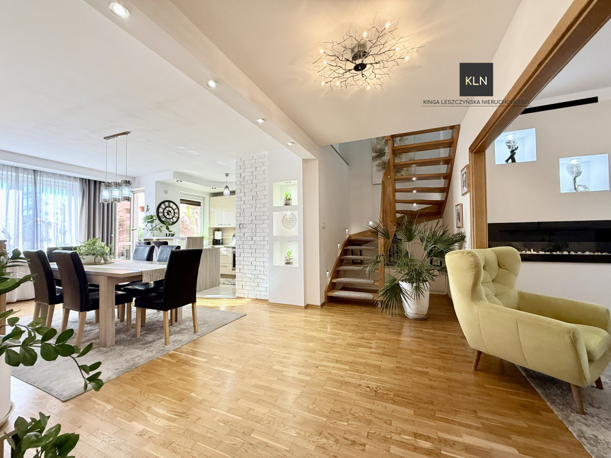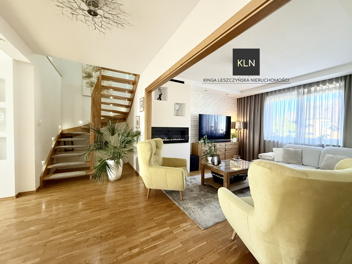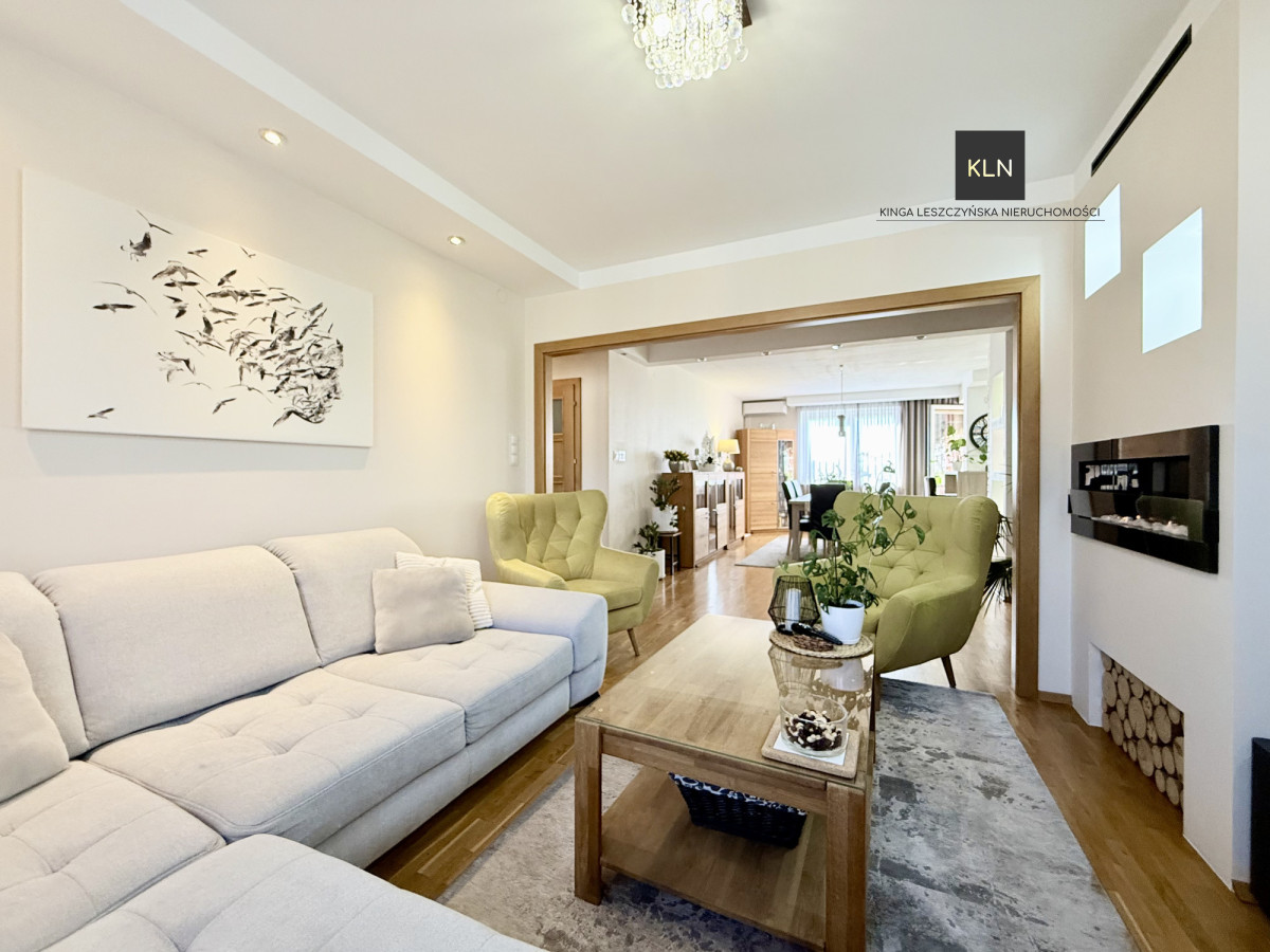 W salonie oraz w sypialni na piętrze zamontowane zostały biokominki, a na pierwszym poziomie dodatkowo znajduje się klimatyzacja .