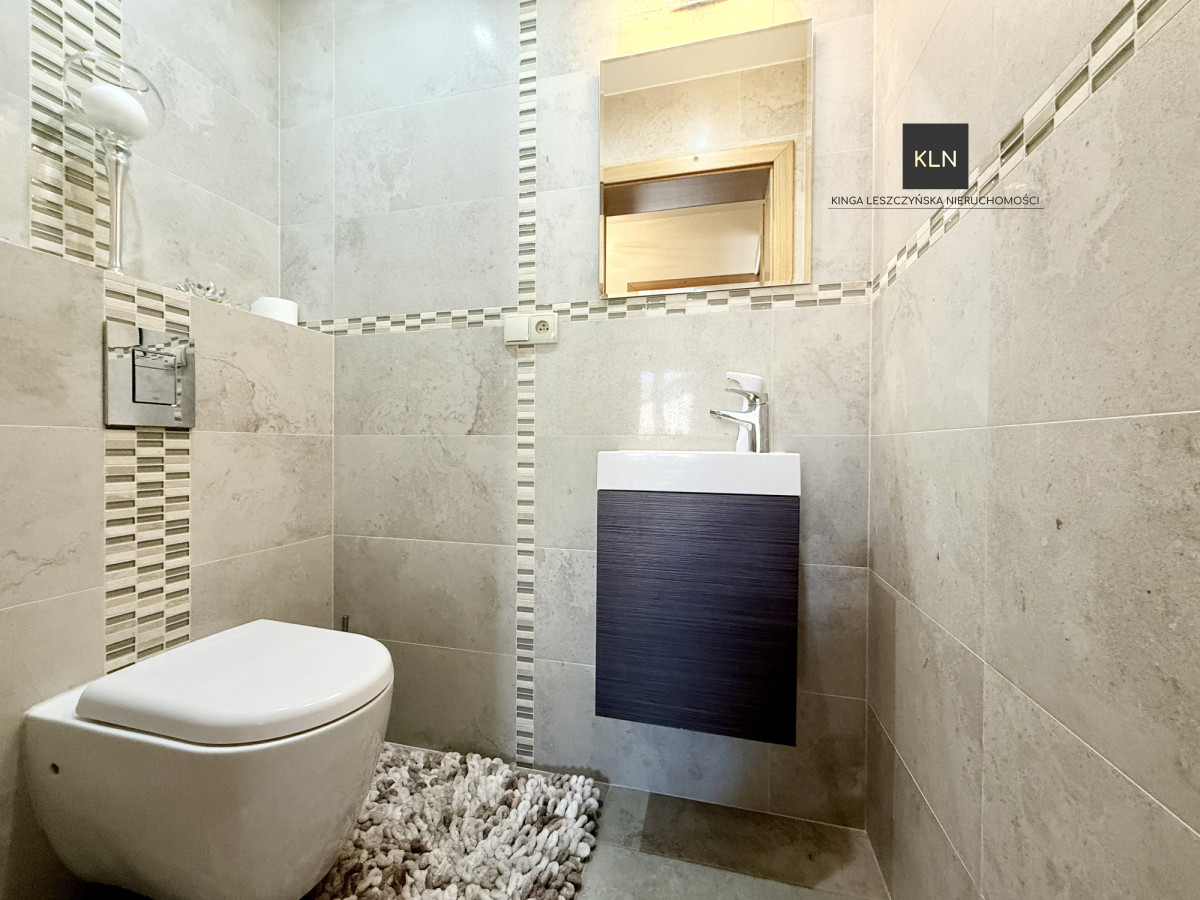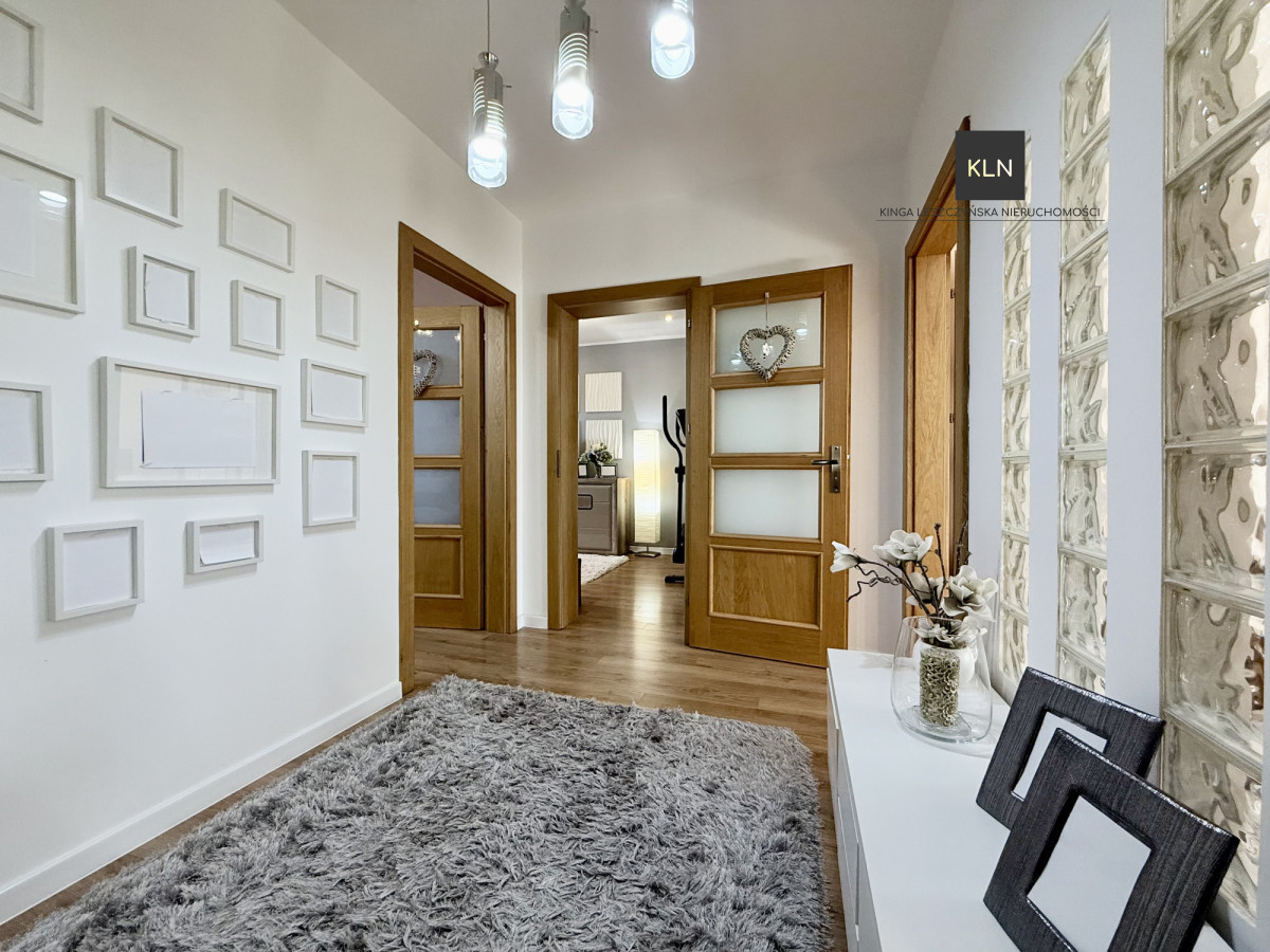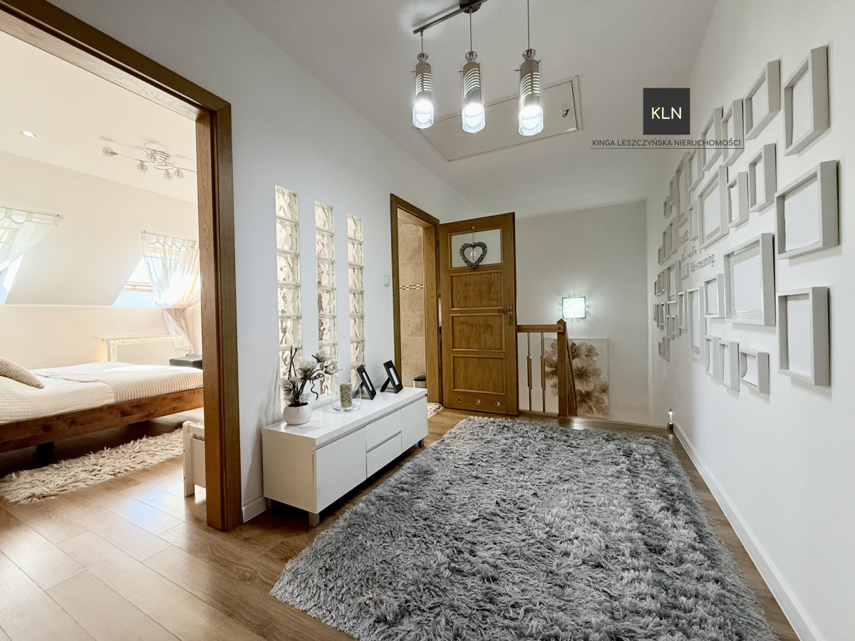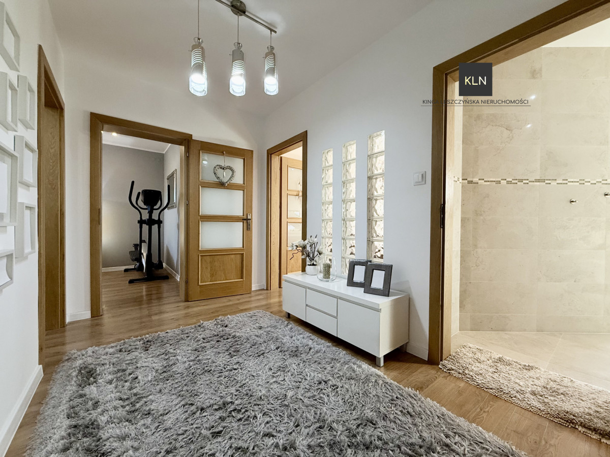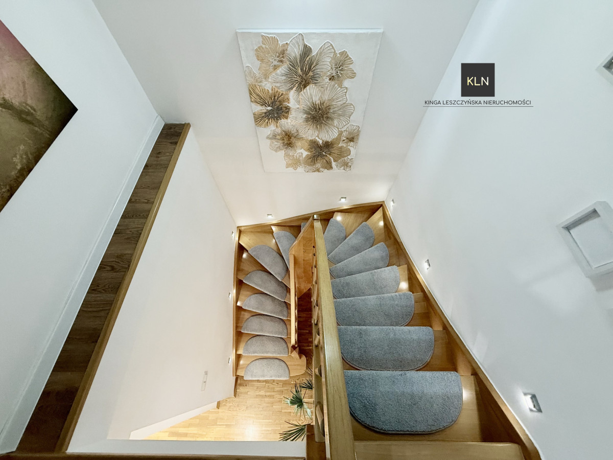 W mieszkaniu na pierwszym pietrze położony jest parkiet, a na piętrze panele. Wszystkie drzwi wewnętrzne oraz schody są dębowe.